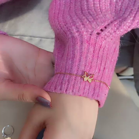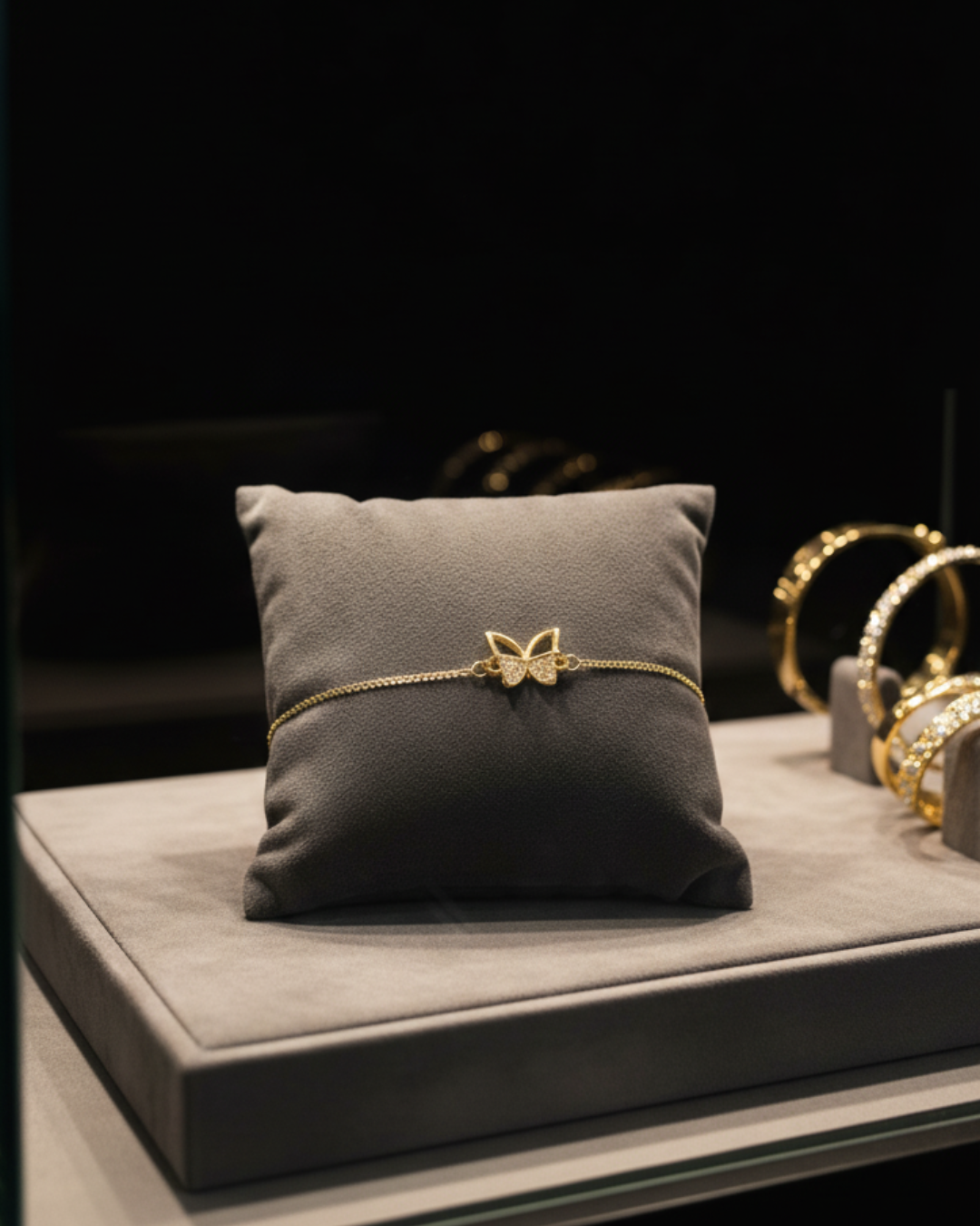 Delicate and graceful, the Golden Butterfly Charm Bracelet captures the beauty of transformation and elegance. Crafted in lustrous gold with a sparkling butterfly centerpiece, it adds a touch of charm and sophistication to every look — perfect for both everyday wear and special moments.